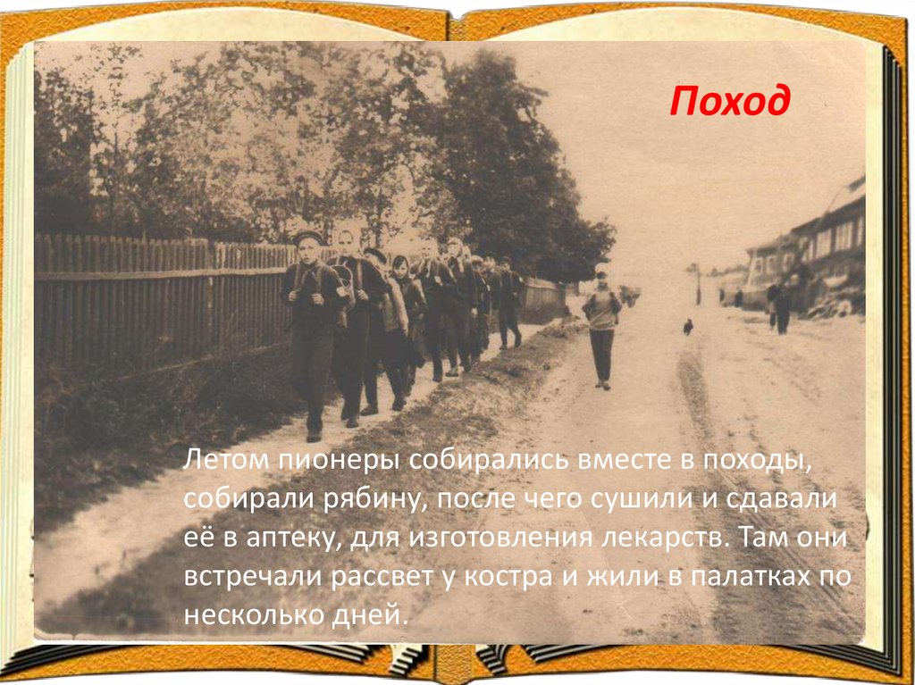 ПоходЛетом пионеры собирались вместе в походы,
