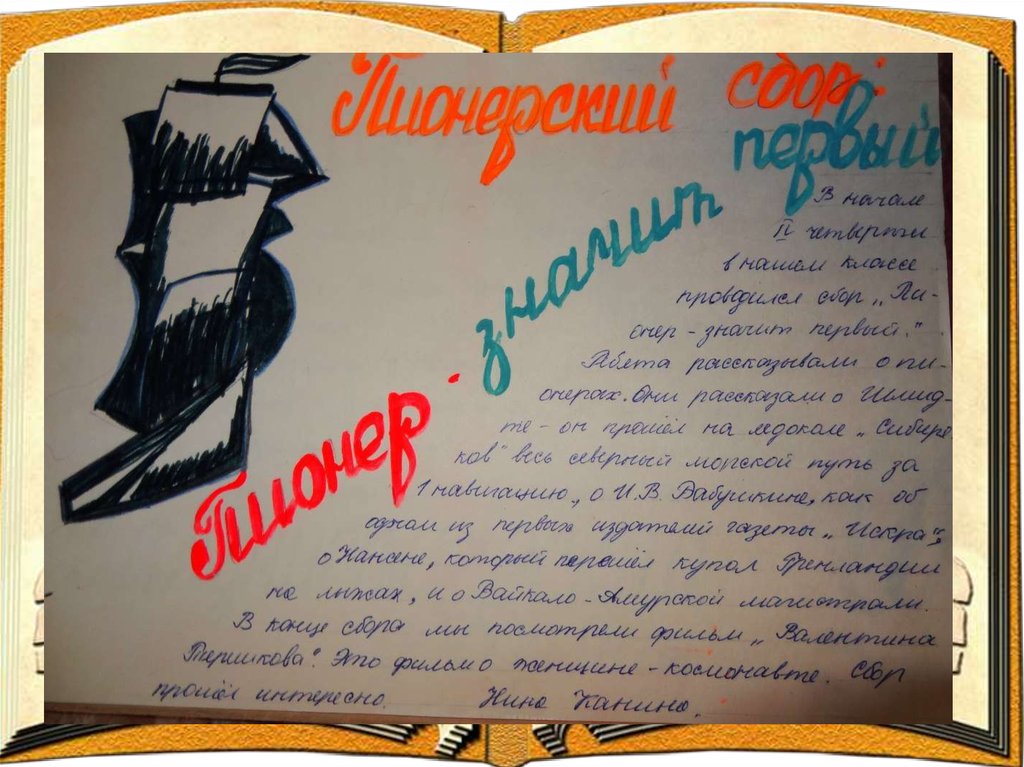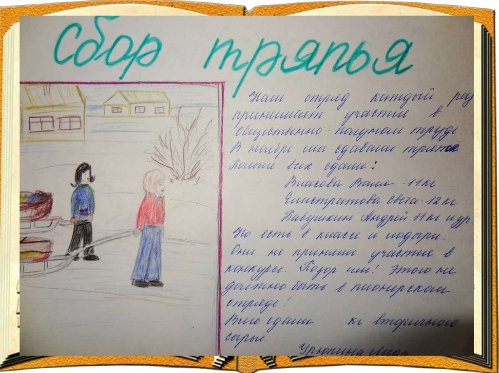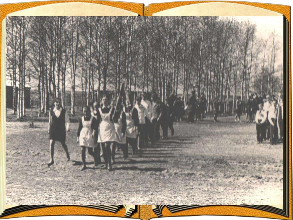 2. 1. Тимуровское движение 5. Субботники. 2. Сбор металлолома. 6. Юные натуралисты. 3. Сбор макулатуры. 7. Посадка деревьев. 4. Помощь колхозу. 8. Поход