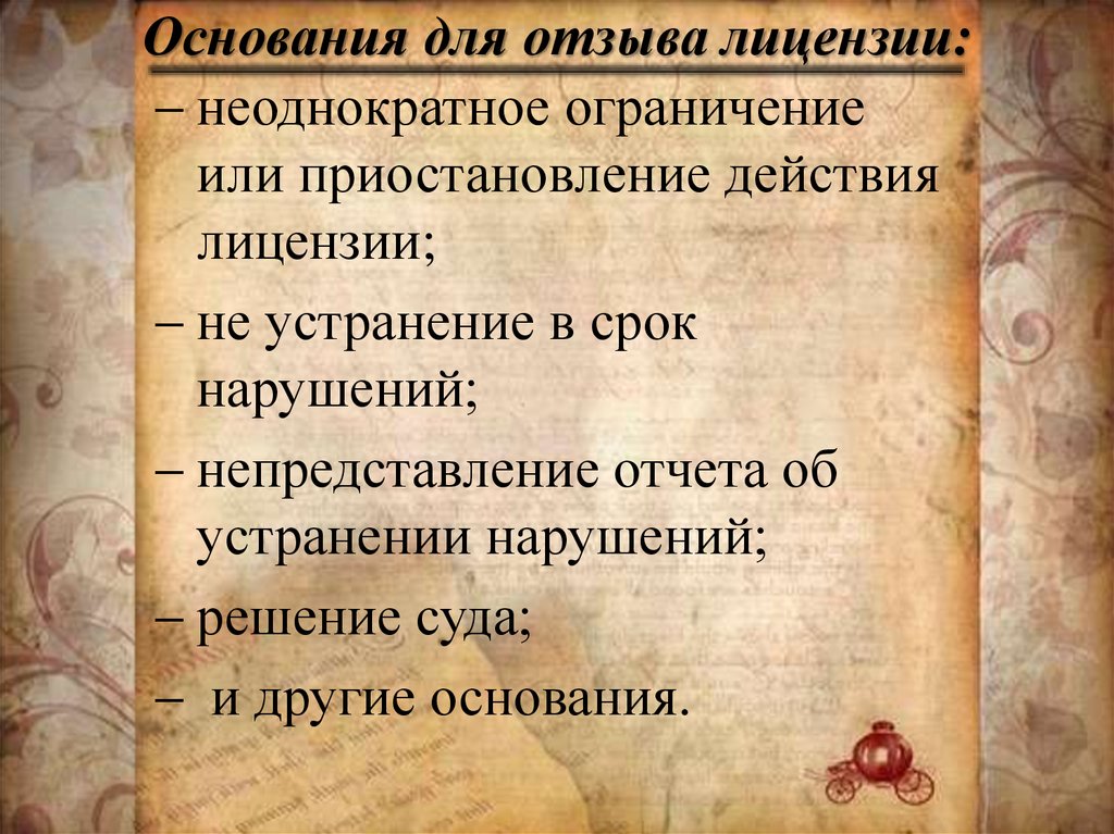 окончание срока действия лицензии илипринятие лицензирующим органом