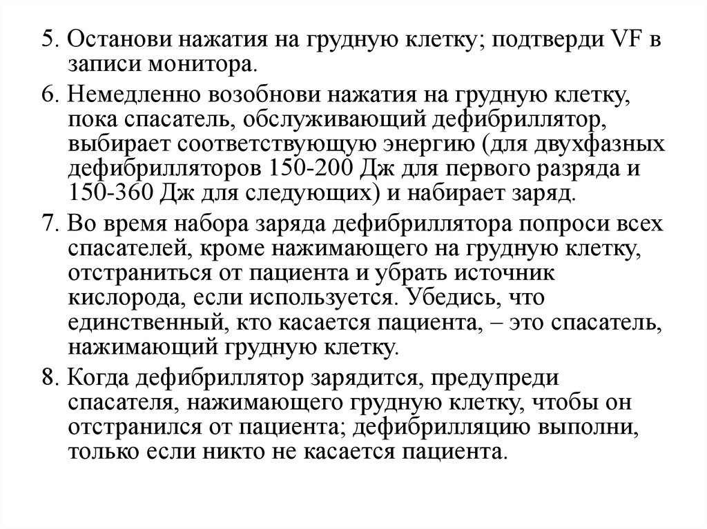 8. Когда дефибриллятор зарядится, предупреди