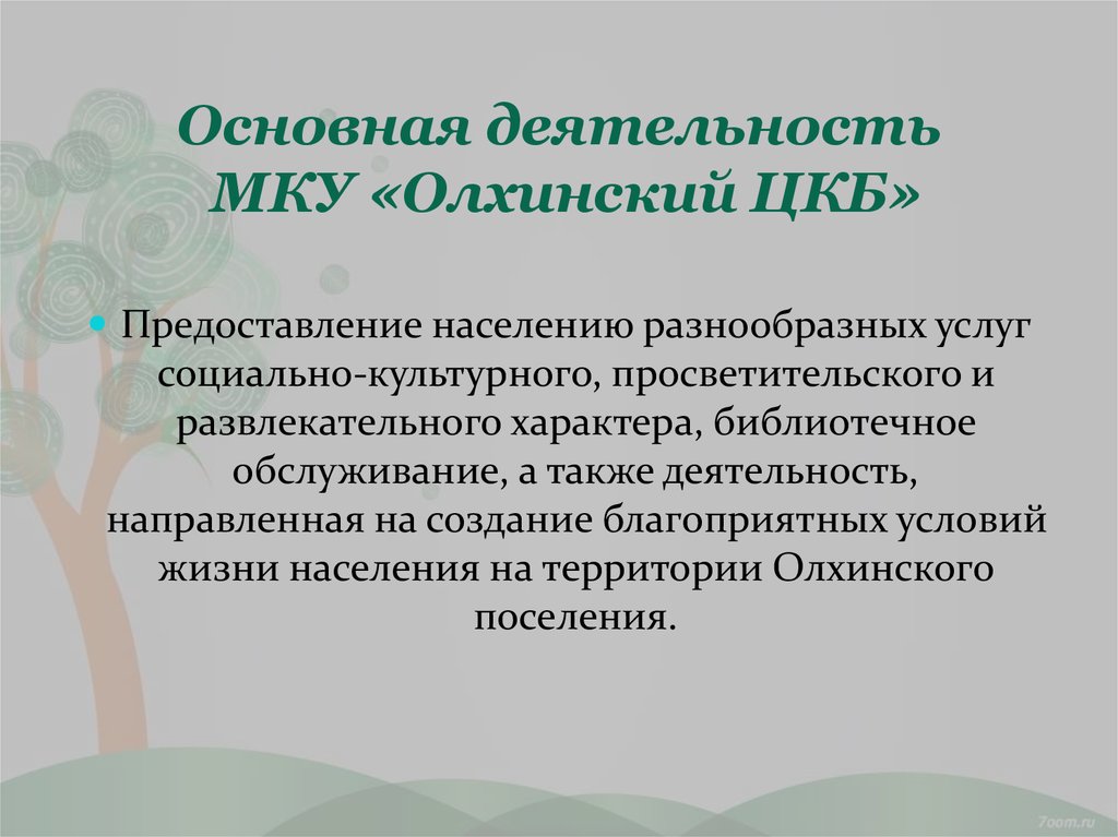 2016 год.2. Основная деятельность МКУ «Олхинский ЦКБ»