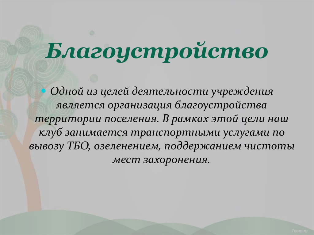 Одной из целей деятельности учрежденияявляется организация благоустройства