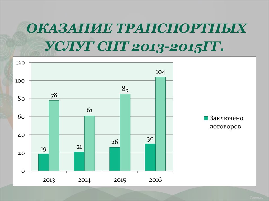 20. ОКАЗАНИЕ ТРАНСПОРТНЫХ УСЛУГ СНТ 2013-2015ГГ.