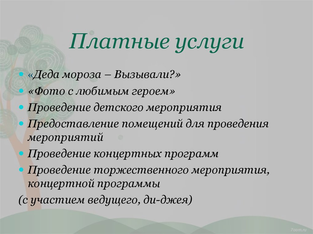 Предоставление населению разнообразных услугсоциально-культурного, просветительского и