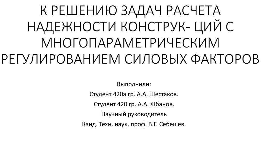1. К РЕШЕНИЮ ЗАДАЧ РАСЧЕТА НАДЕЖНОСТИ КОНСТРУК- ЦИЙ С МНОГОПАРАМЕТРИЧЕСКИМ РЕГУЛИРОВАНИЕМ СИЛОВЫХ ФАКТОРОВ