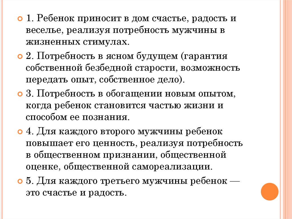 1. Ребенок приносит в дом счастье, радость ивеселье, реализуя потребность мужчины в
