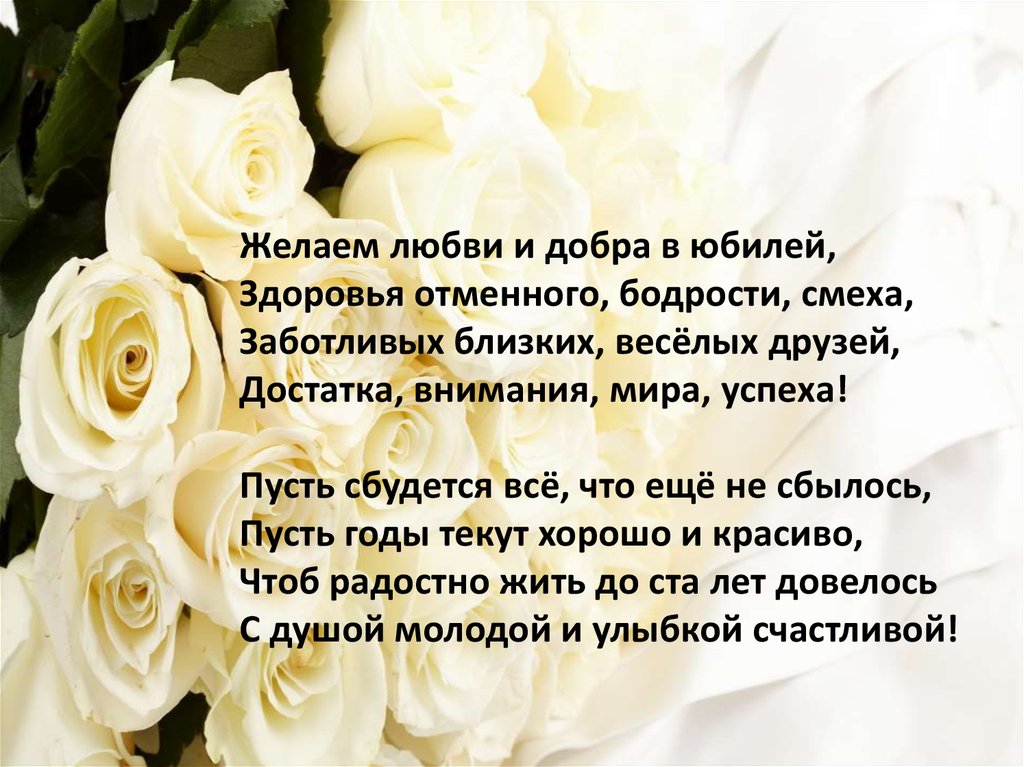 Желаем любви и добра в юбилей,Здоровья отменного, бодрости, смеха,