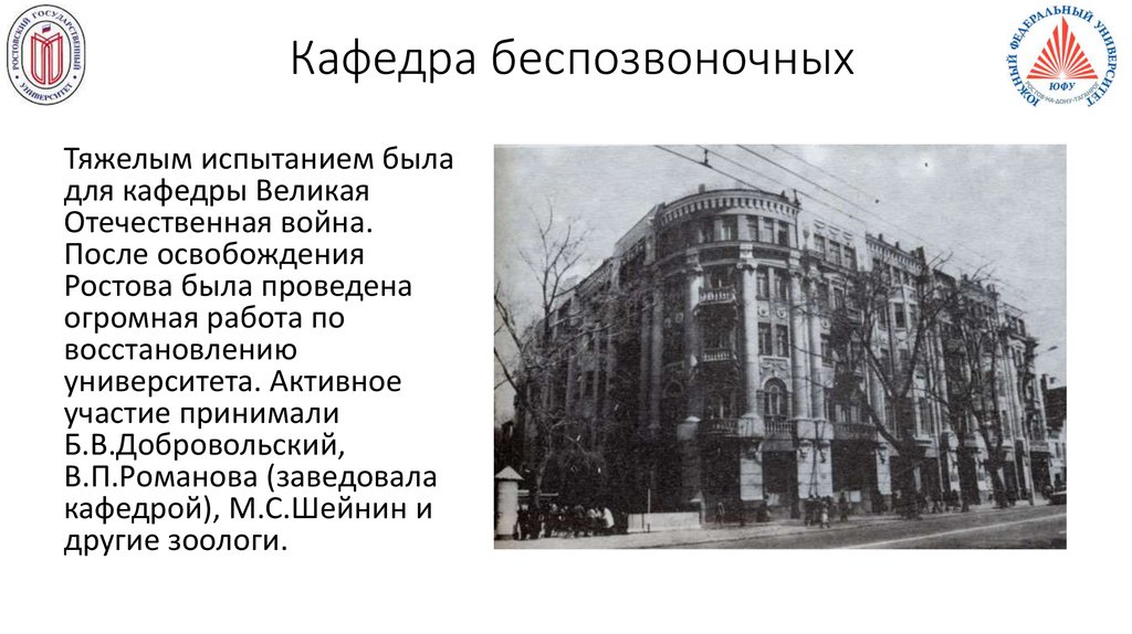 История биологической науки ЮФУ. Кафедра зоологии