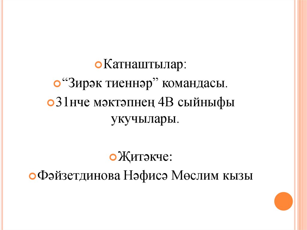 3. Без - “Зирәк тиеннәр” командасы. Девизыбыз – бердәм булу. Татар телен – дуслык телен Бергәләп саклап калу