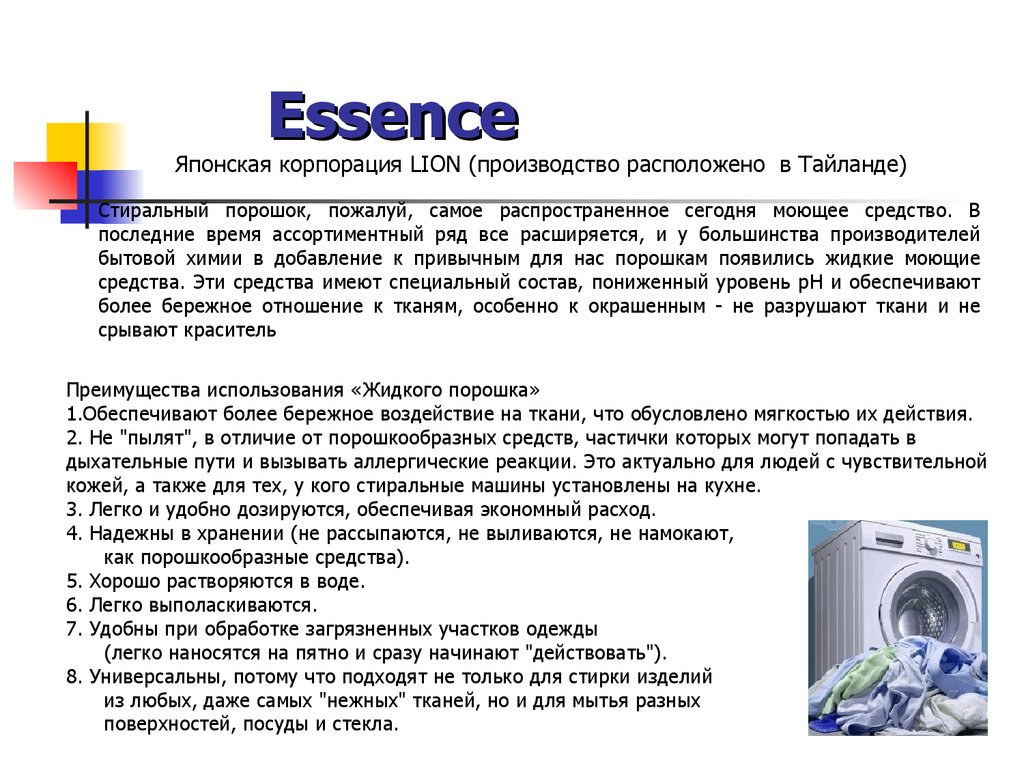 EssenceЯпонская корпорация LION (производство расположено в Тайланде)