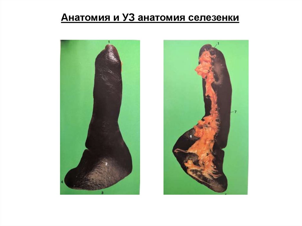 1) Анатомия и ультразвуковая анатомиянеизмененной селезенки.