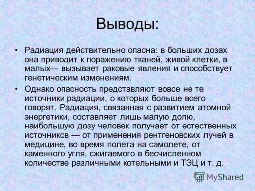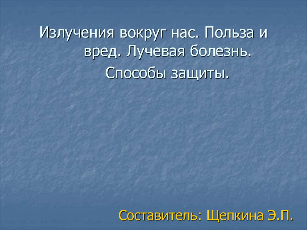 Излучения вокруг нас. Польза и вред. Лучевая болезнь. Способы защиты