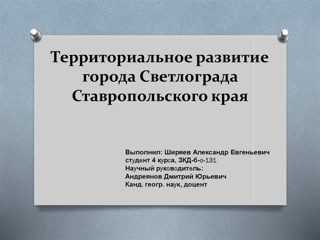 1. Территориальное развитие города Светлограда Ставропольского края