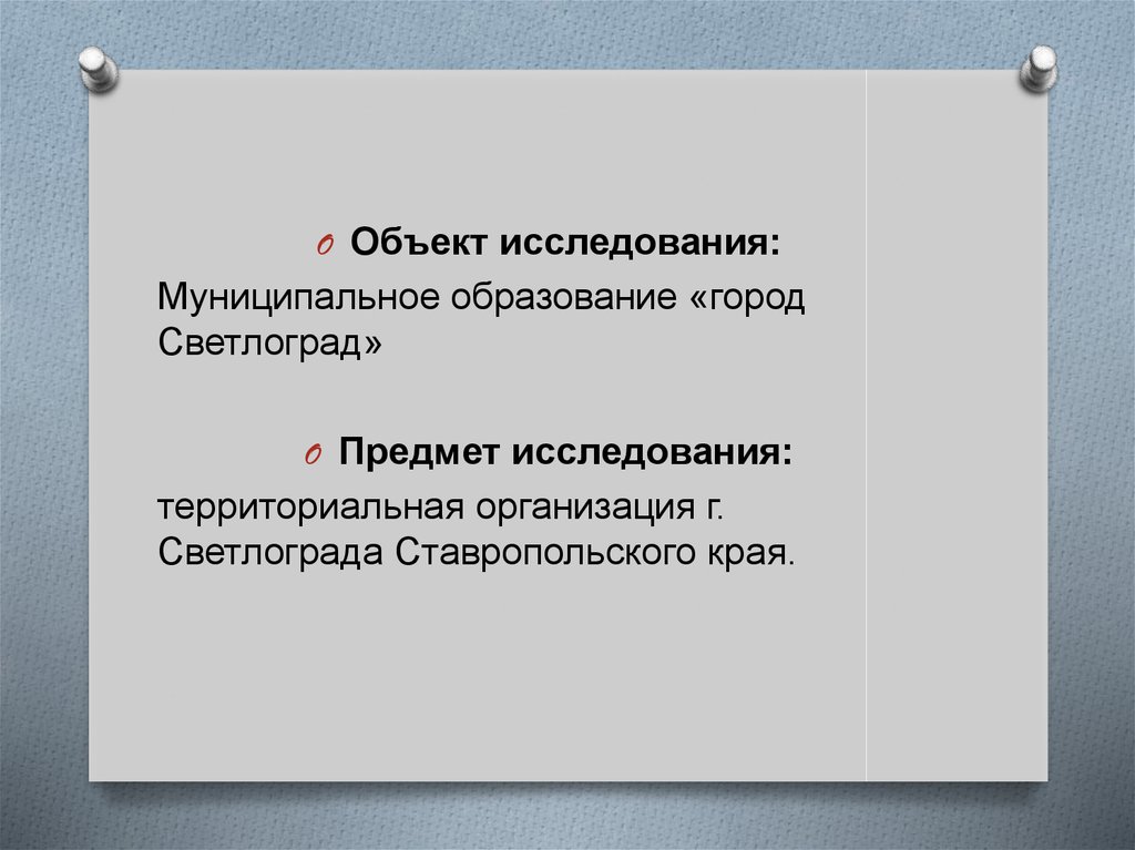 O Объект исследования:Муниципальное образование «город