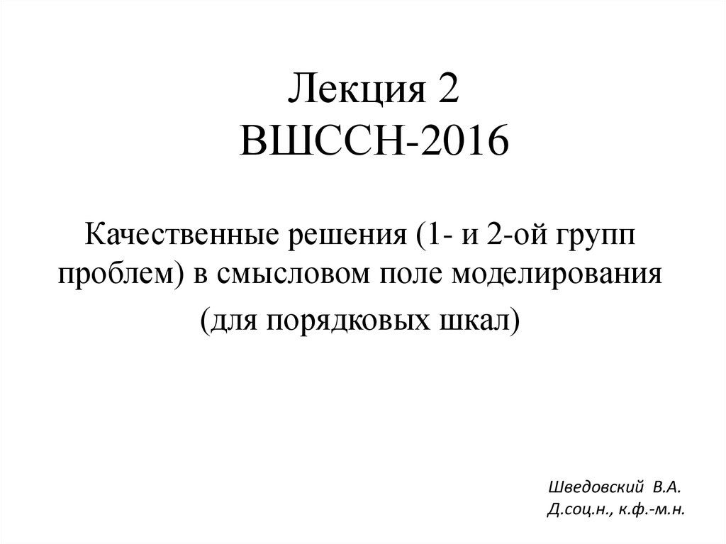 Качественные решения первой и второй групп проблем в смысловом поле моделирования, для порядковых шкал. (Лекция 2)