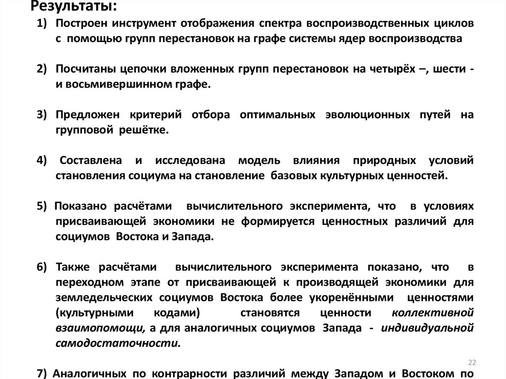 Проведённые построения оценок чисел классов перестановок или ВЦ, а т.е. и набораэволюционных траекторий на групповой решётке, соответствуют экономике присвоения,