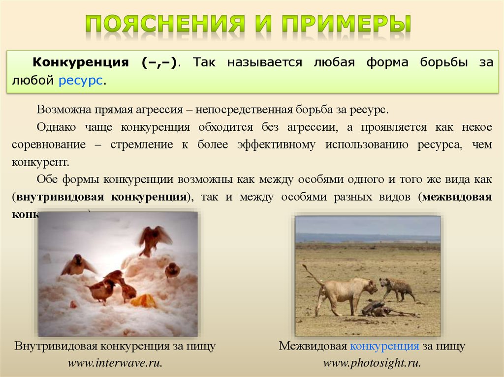 Конкуренция (–,–). Так называется любая форма борьбы залюбой ресурс.