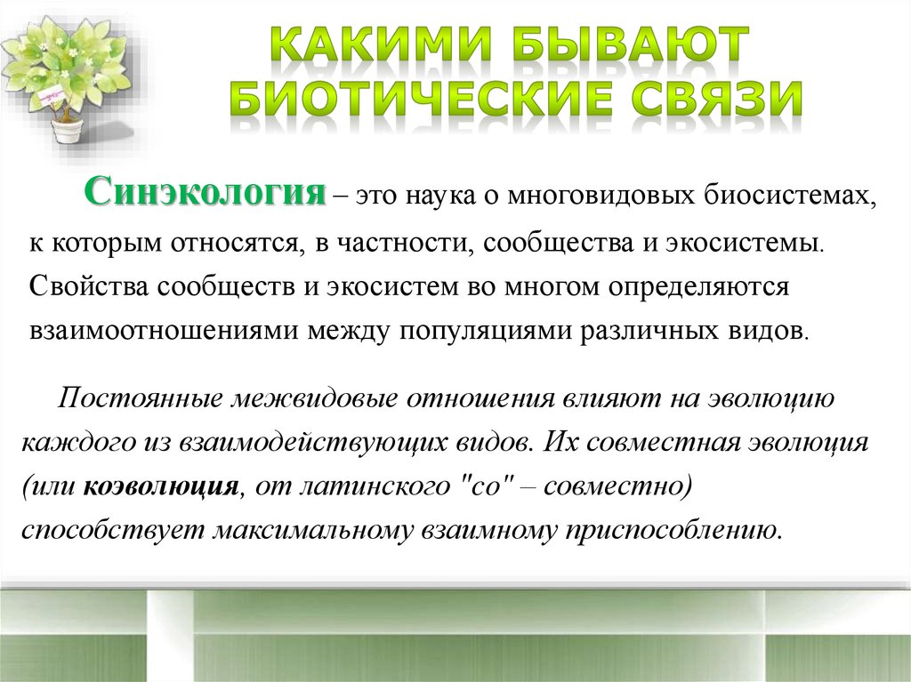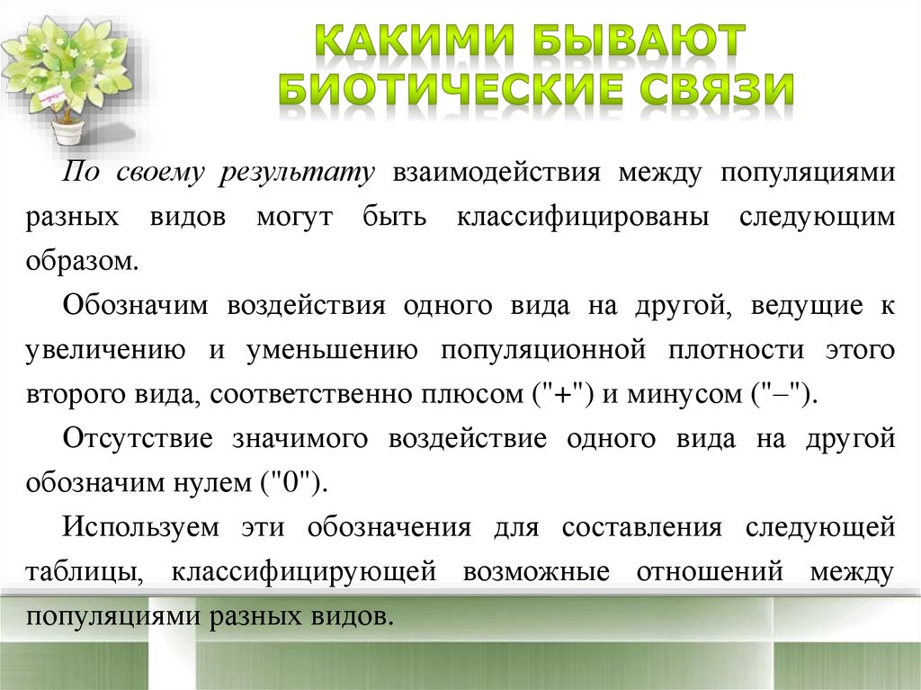 1. Какими бывают биотические связи2. Классификация отношений между популяциями