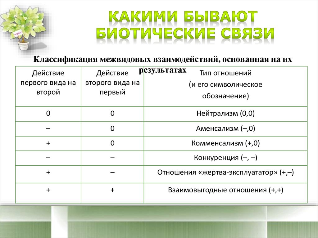 Классификация межвидовых взаимодействий, основанная на ихДействие