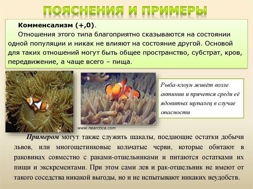 пищи и экскрементами. При этом сами лев и рак-отшельник не имеют от