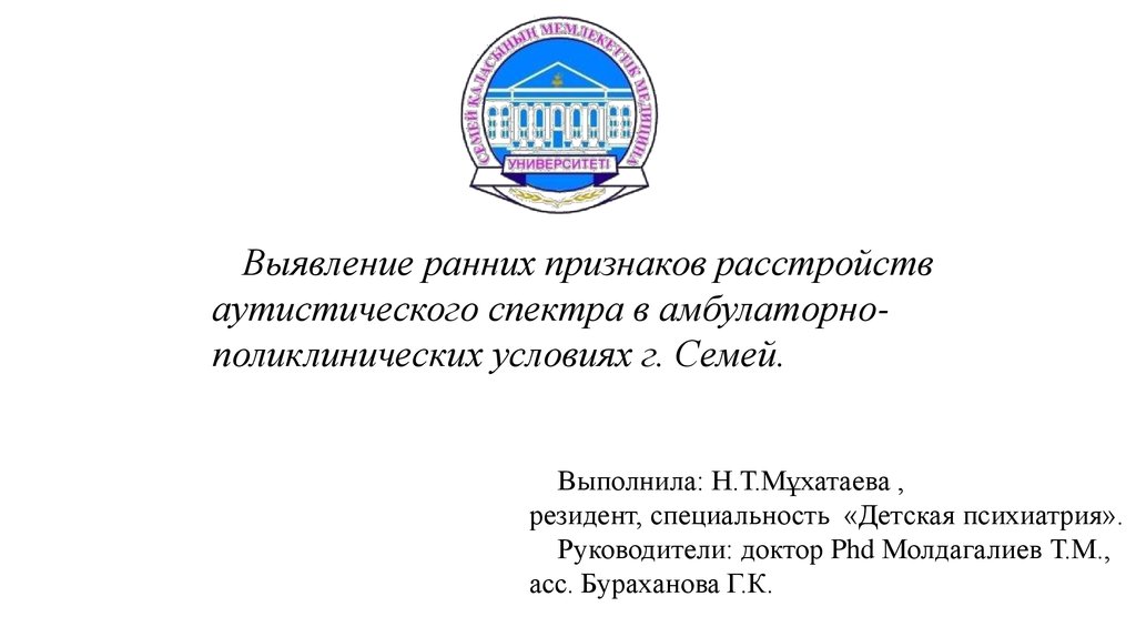 Выявление ранних признаков расстройстваутистического спектра в амбулаторнополиклинических условиях г. Семей.
