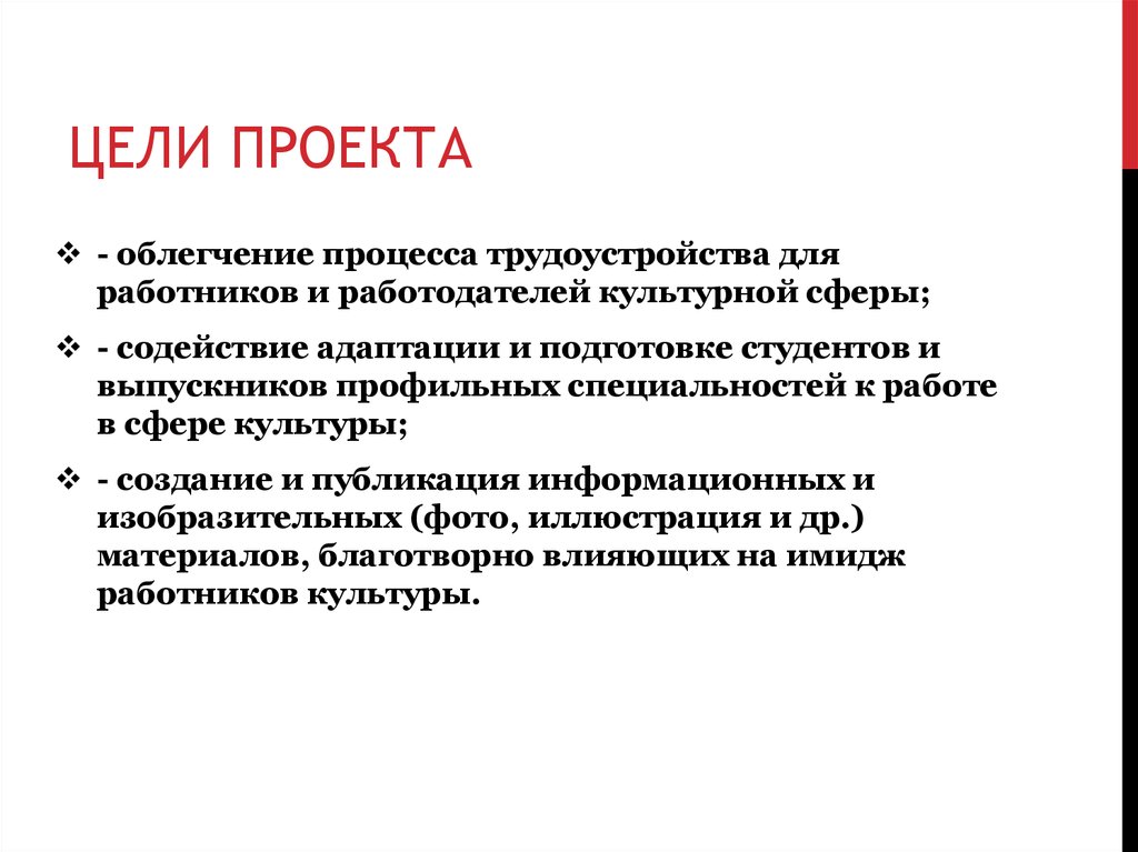 ЦЕЛИ ПРОЕКТА- облегчение процесса трудоустройства для