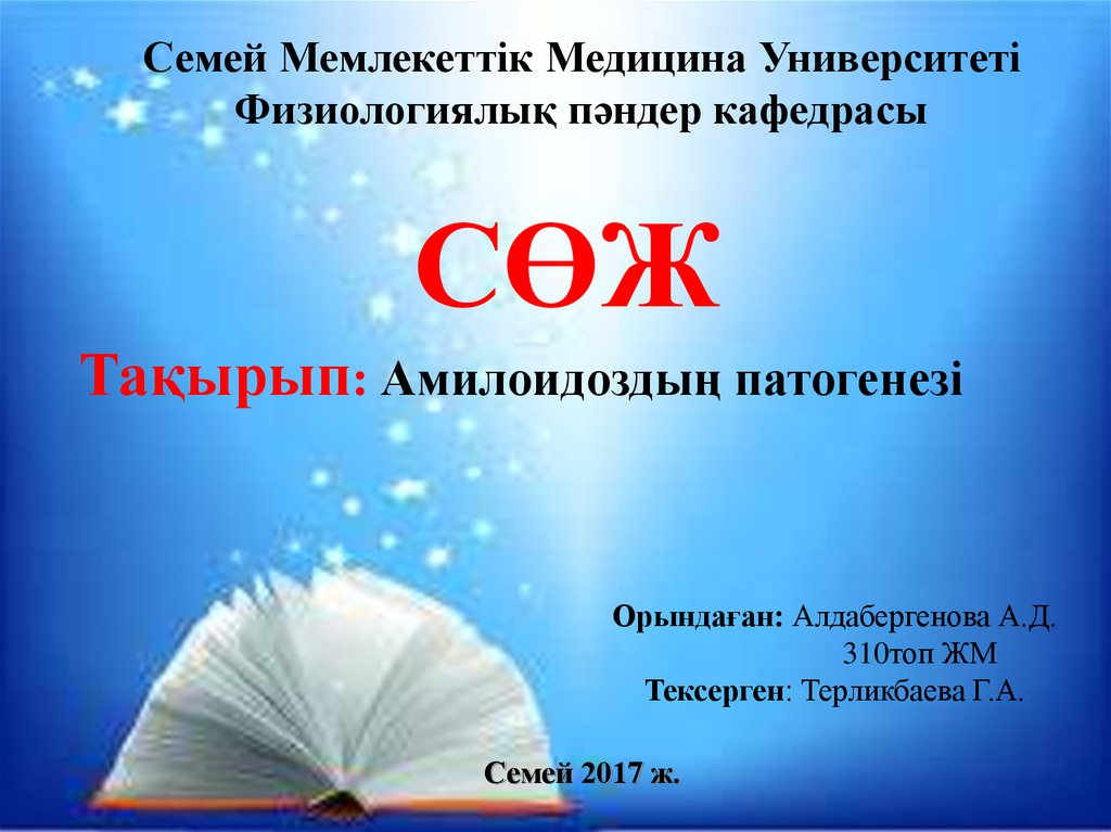 Семей Мемлекеттік Медицина УниверситетіФизиологиялық пәндер кафедрасы