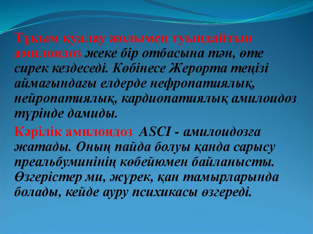 Тұқым қуалау жолымен туындайтынамилоидоз жеке бір отбасына тән, өте