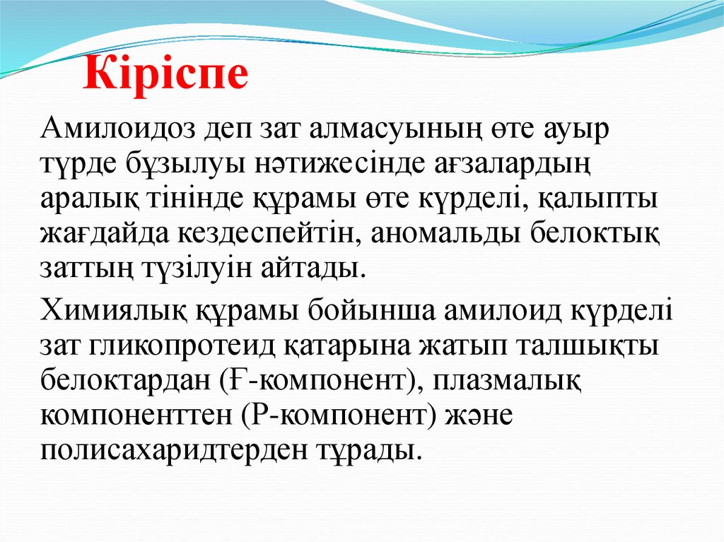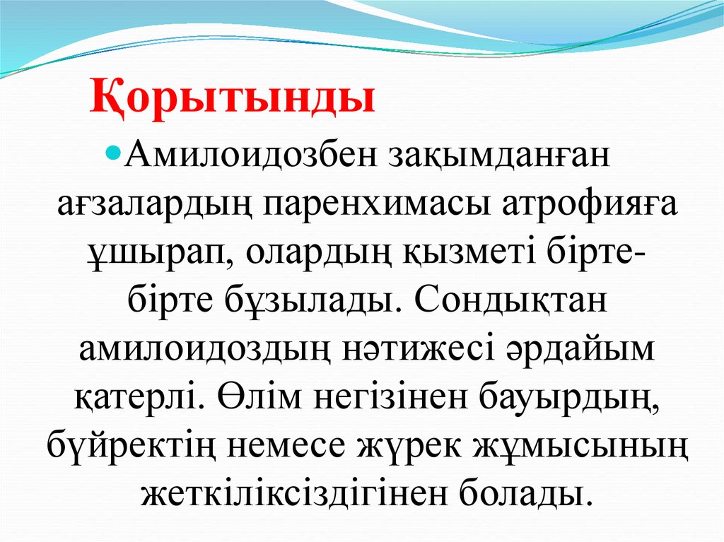 Амилоидоз деп зат алмасуының өте ауыртүрде бұзылуы нәтижесінде ағзалардың