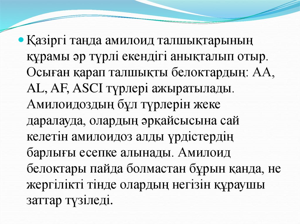 Қазіргі таңда амилоид талшықтарыныңқұрамы әр түрлі екендігі анықталып отыр.