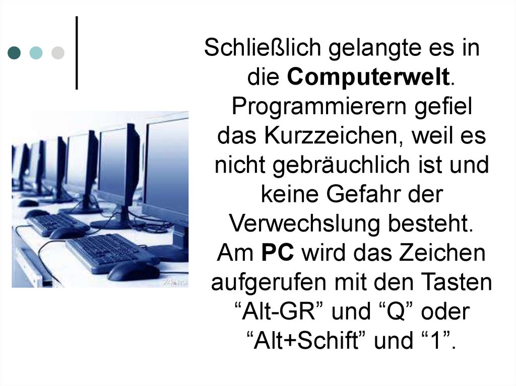 Bekannt wurde das Zeichen @ durch Internetund E-Mail.