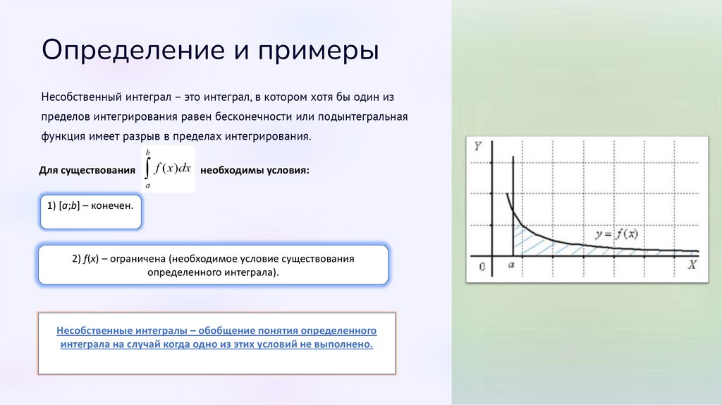 Определение и примерыНесобственный интеграл – это интеграл, в котором хотя бы один из