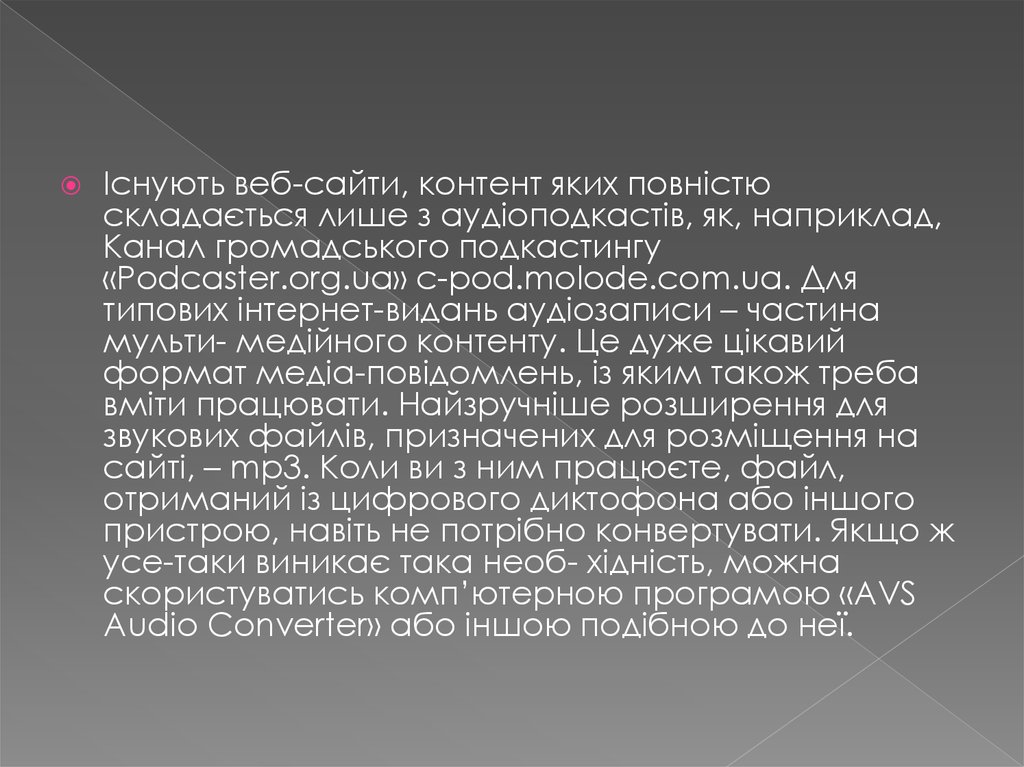 1. «Підготовка аудіоматеріалів для Інтернету» підготувала Ігнатенко Катерина