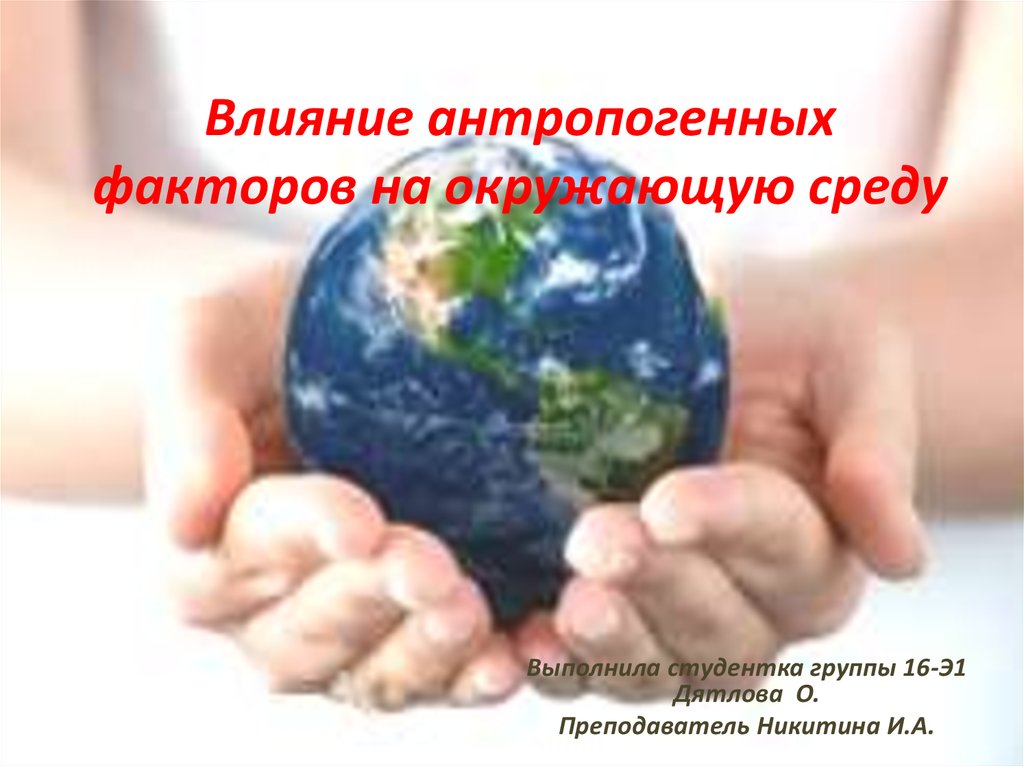 В настоящее время в среде, окружающей человека,происходят изменения, связанные с влиянием научнотехнической революции, хозяйственной деятельности