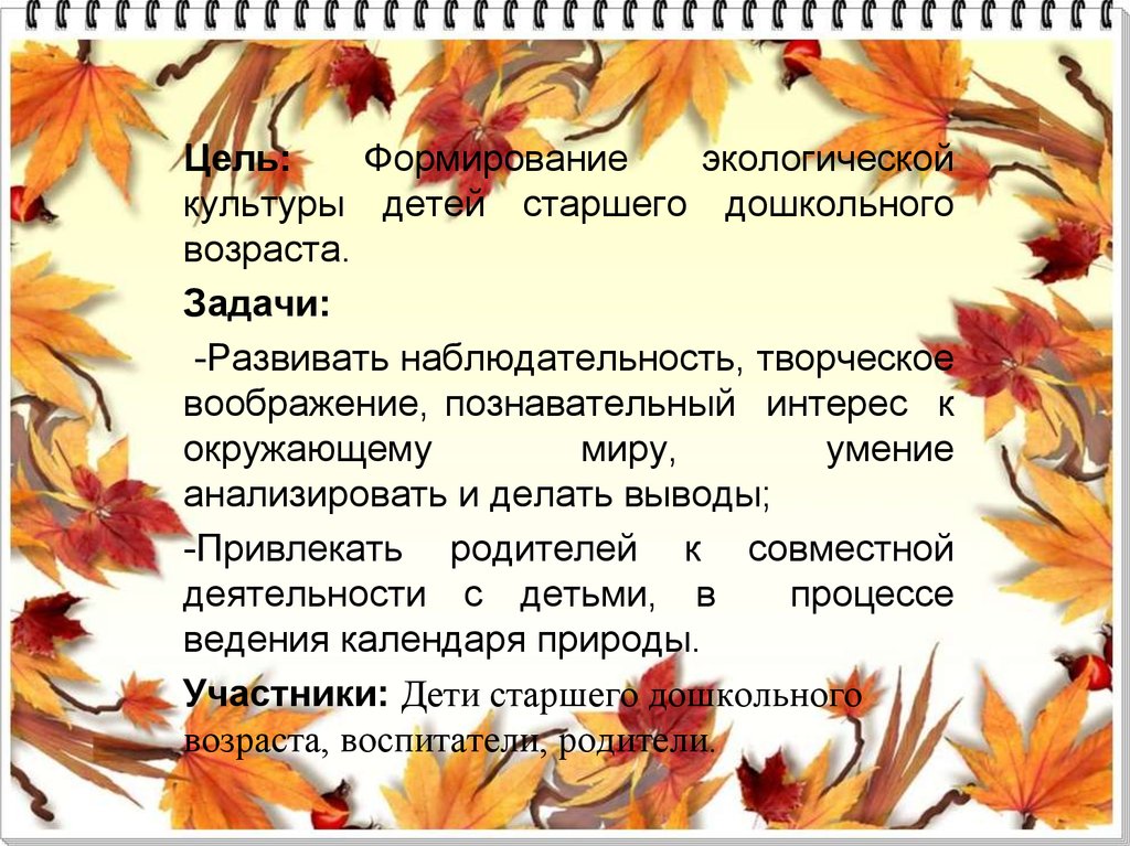 ведения календаря природы.
