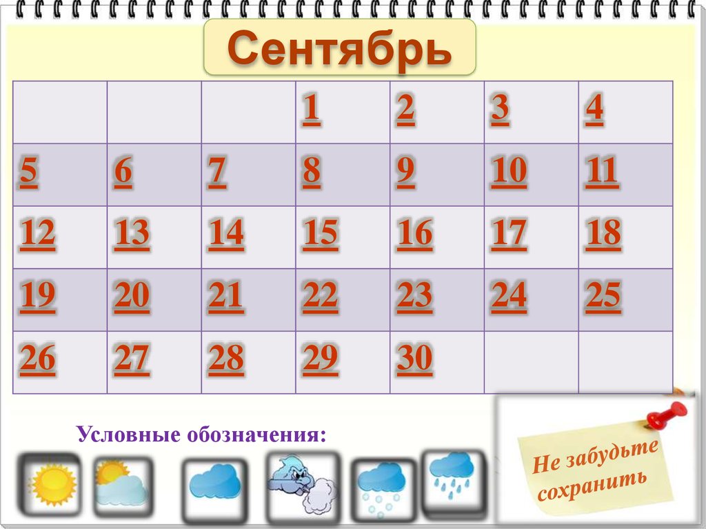Для заполнения календаря погоды, который находится на четвертом слайде,