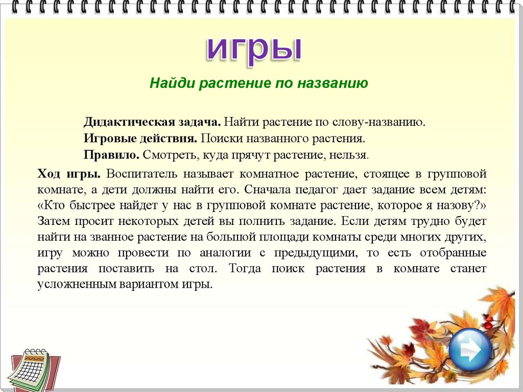 игры и упражнения о закономерных изменениях природы осенью, о сезонных