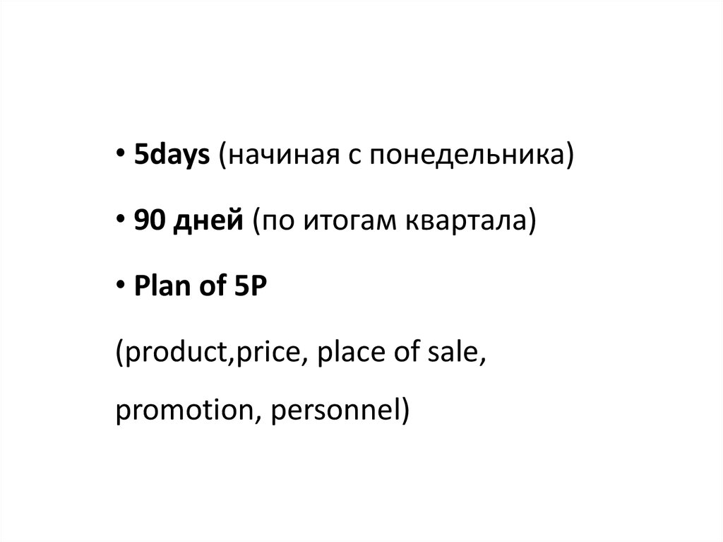 • 5days (начиная с понедельника)• 90 дней (по итогам квартала)