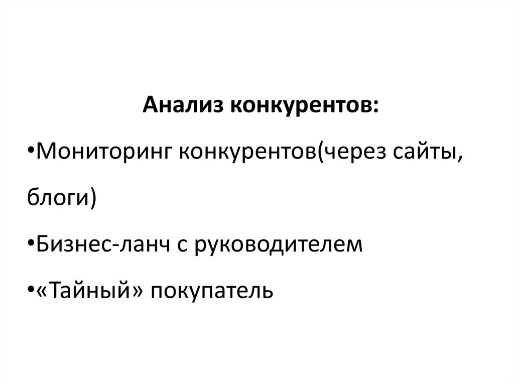 Анализ конкурентов:•Мониторинг конкурентов(через сайты,