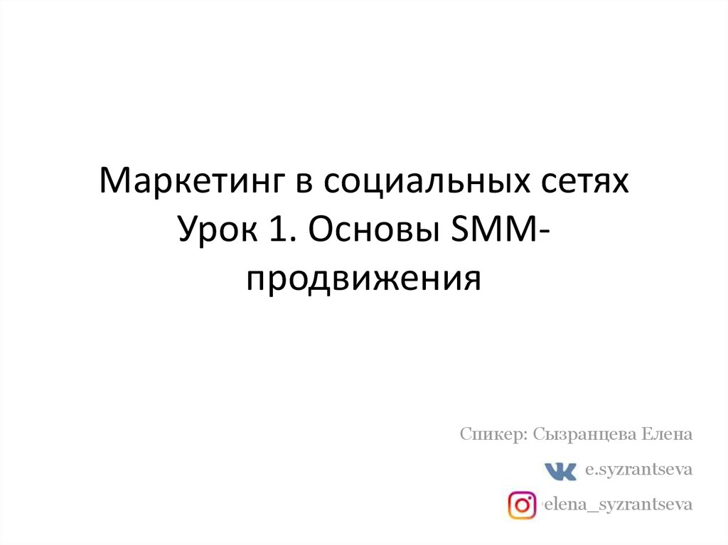 Маркетинг в социальных сетяхУрок 1. Основы SMMпродвижения
