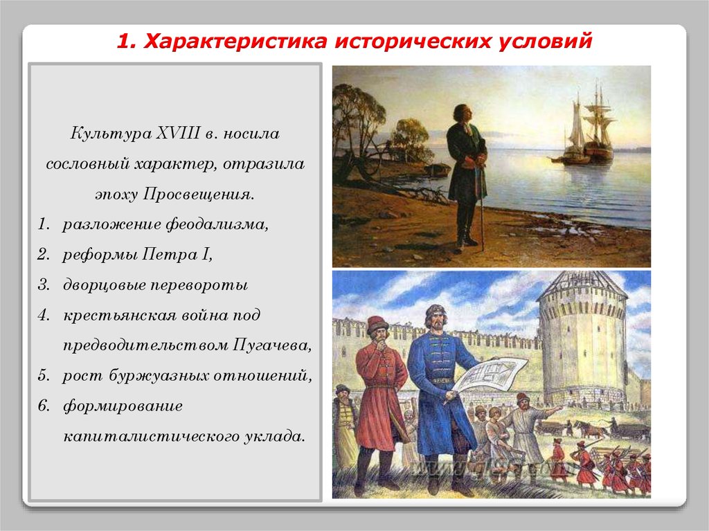 1. Характеристика исторических условийКультура XVIII в. носила