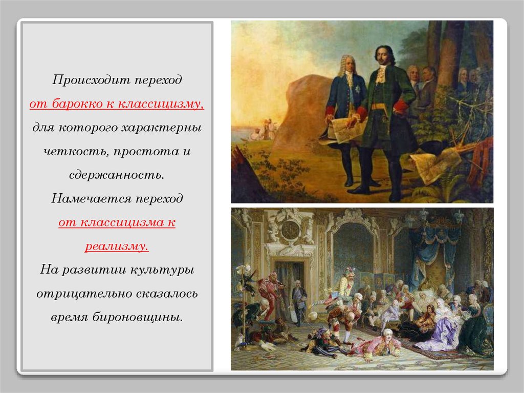 Происходит переходот барокко к классицизму,