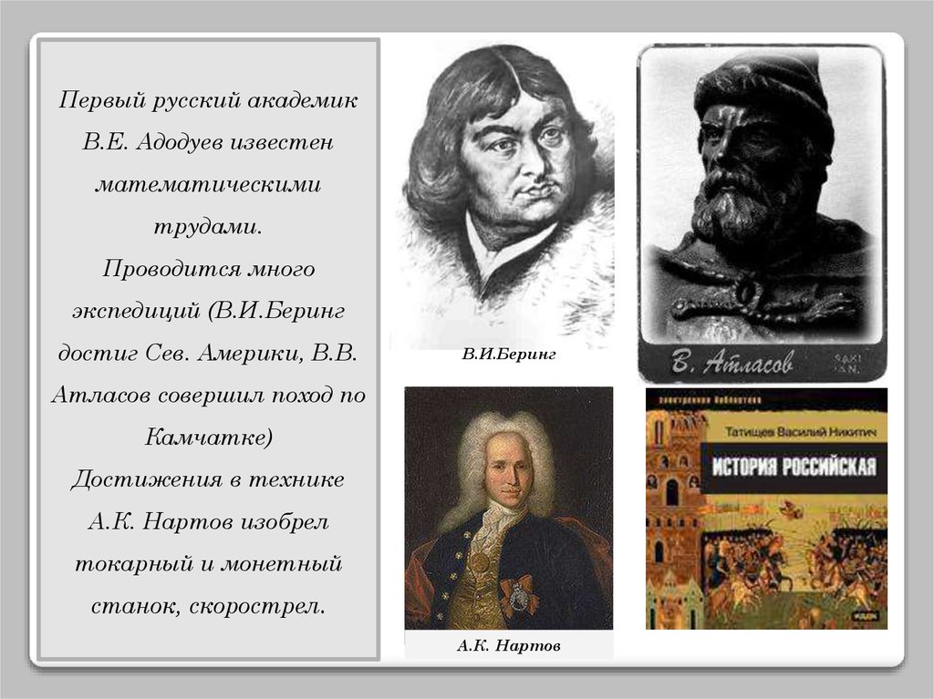 Первый русский академикВ.Е. Адодуев известен