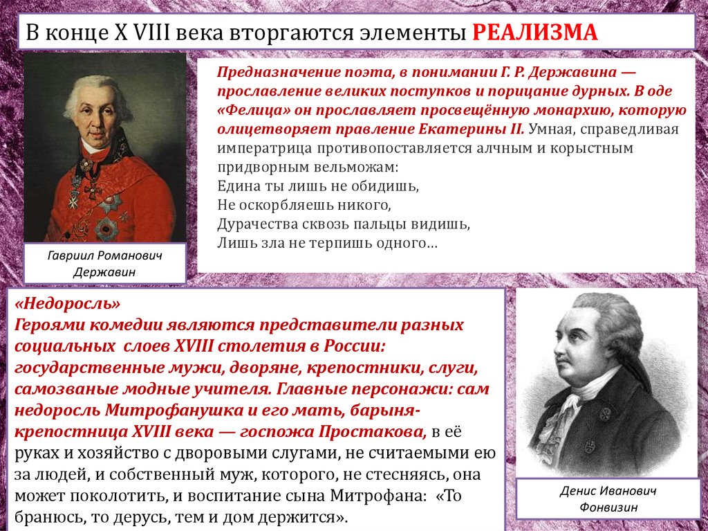 В конце Х VIII века вторгаются элементы РЕАЛИЗМАГавриил Романович