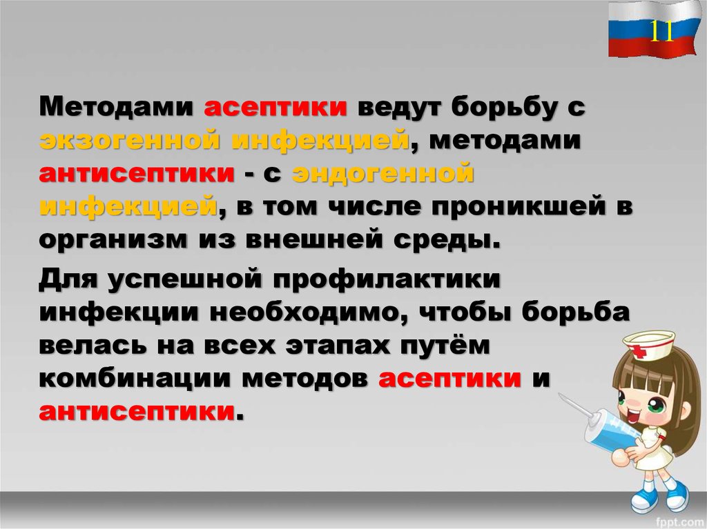 • Электрохимические растворы. Гипохлорит натрия 0,03-0,12%. Спектр действия - аэробы, анаэробы, грибы.