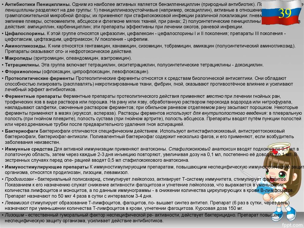• Левамизол стимулирует образование Т-лимфоцитов, фагоцитов, по- вышает синтез антител. Препарат (6 раз в сутки, через день)