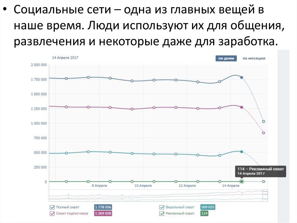 • Социальные сети – одна из главных вещей внаше время. Люди используют их для общения,