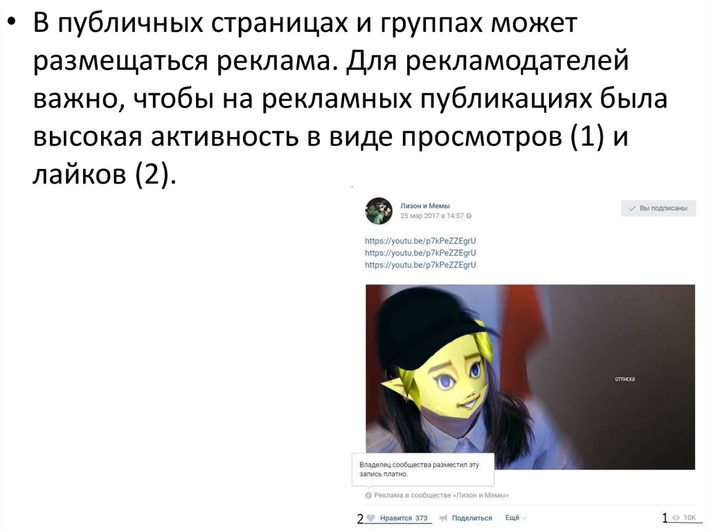 • В публичных страницах и группах можетразмещаться реклама. Для рекламодателей
