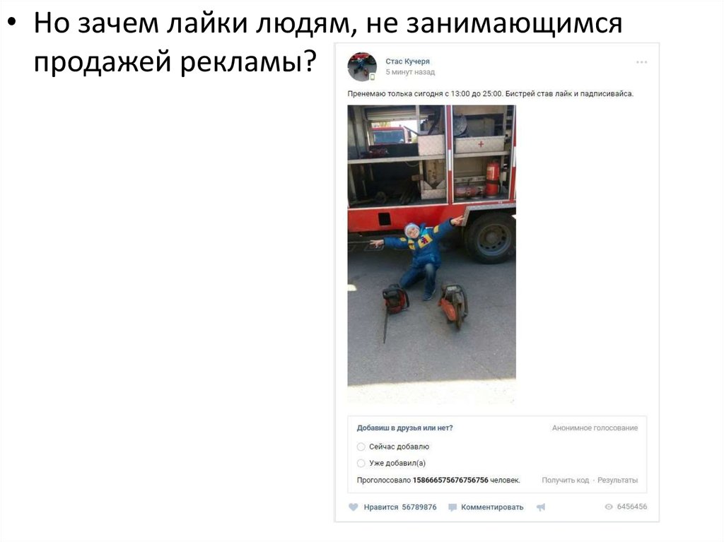 • Но зачем лайки людям, не занимающимсяпродажей рекламы?
