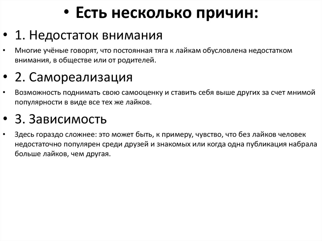 • 2. Рассказать про лайкозависимых и